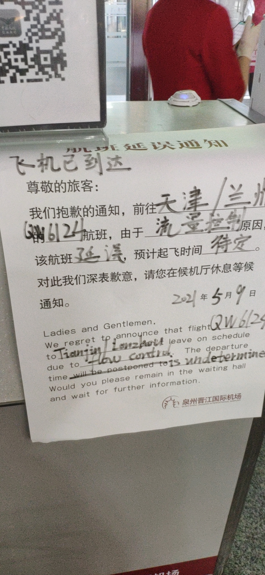 不一会儿就听到播报,去成都的飞机延误了。看外面的天气,阴天,好像要下雨。问了一下旁边去成都的姐姐,已经延误了1个半小时。心中已有些疑虑,但总体感觉还好。