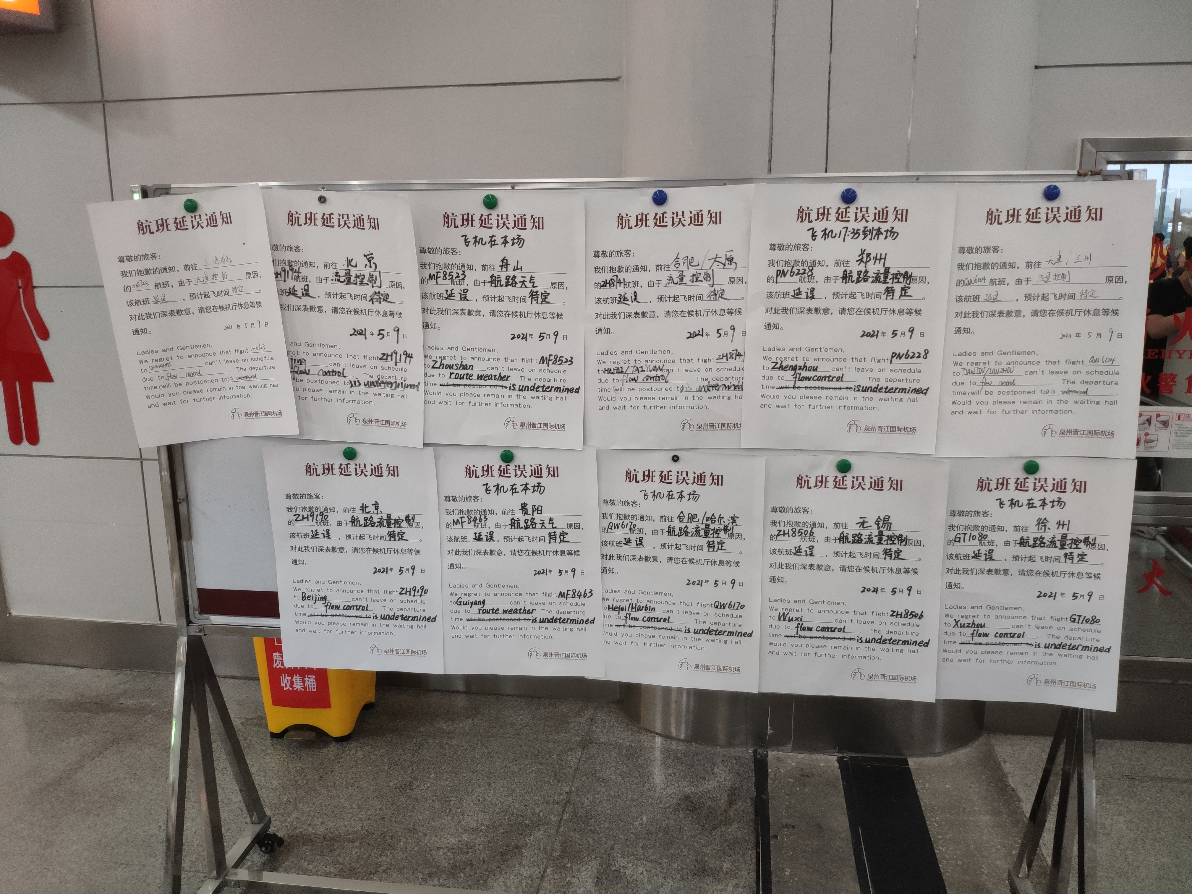 机场开始播报更多的延误信息。同时航旅纵横上已经提示大面积延误了。看看这刺激的画面: