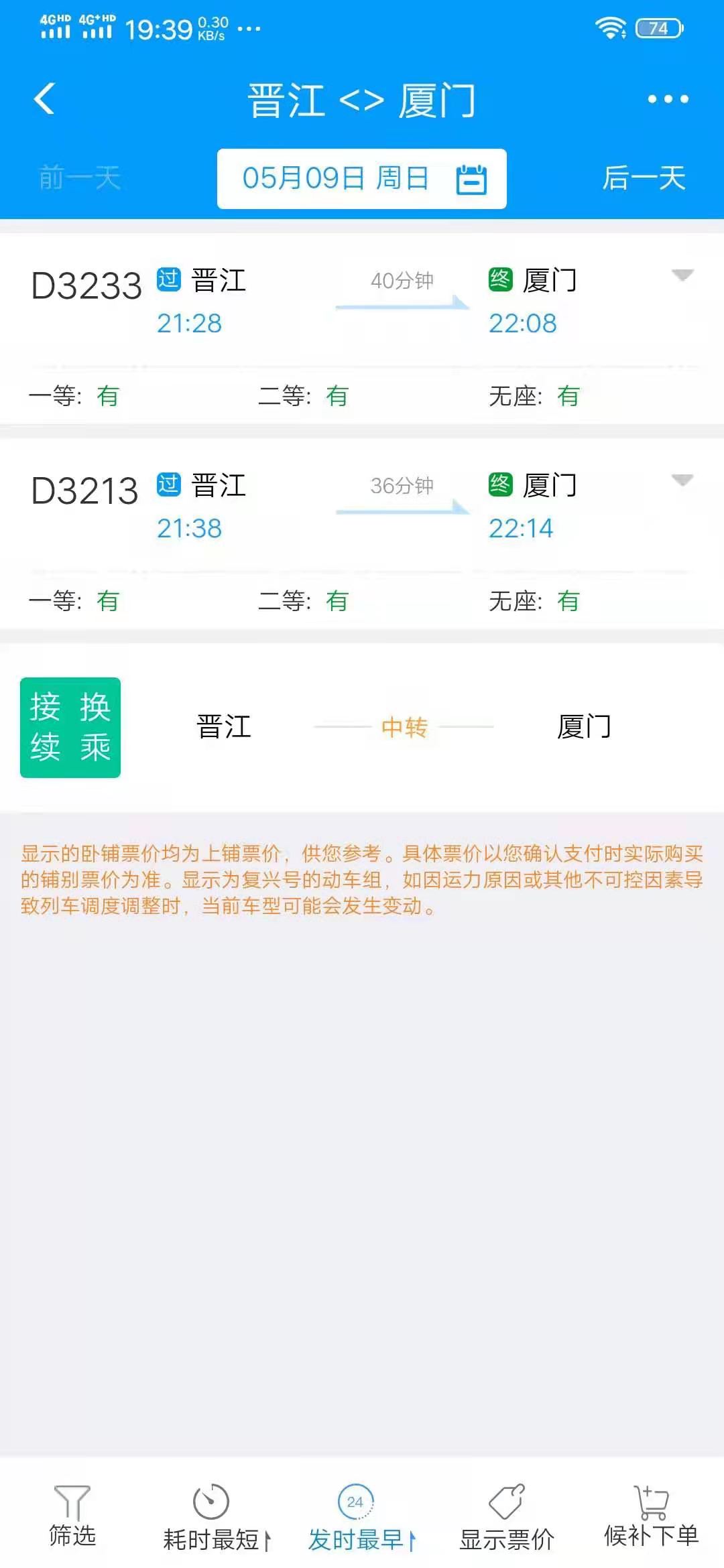 另外价格上看具体哪天会有区别,我当时飞到泉州是1100,飞到厦门市800(机票+40打车,高铁积分),还便宜了一点。这不重要,关键的还是能赶上晚饭。
